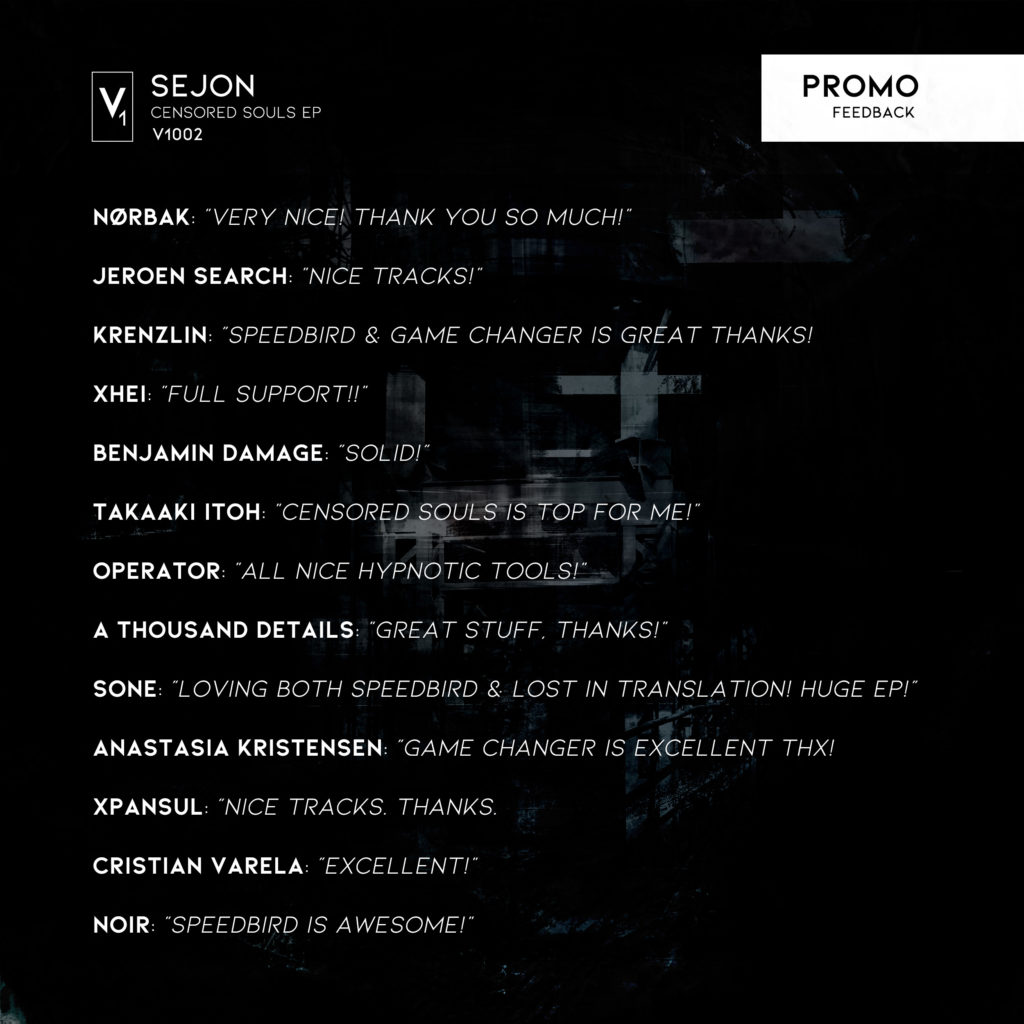 Sejon’s lastest release on his imprint V1 is out now on Bandcamp, Beatport, Juno, Apple Music, Spotify and all good online streaming platforms.
